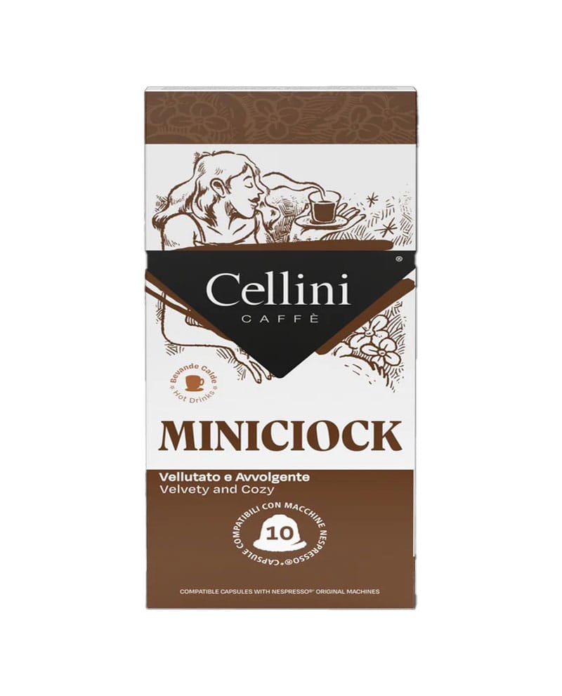 Cellini Miniciock este o delicatesă sub formă de capsulă, special creată pentru cei care doresc o băutură caldă reconfortantă, fiind alternativa perfectă pentru relaxare. Sortimentul se remarcă prin textura „vellutato e avvolgente”, oferind o experiență senzorială care îmbină dulceața fină cu o consistență densă.