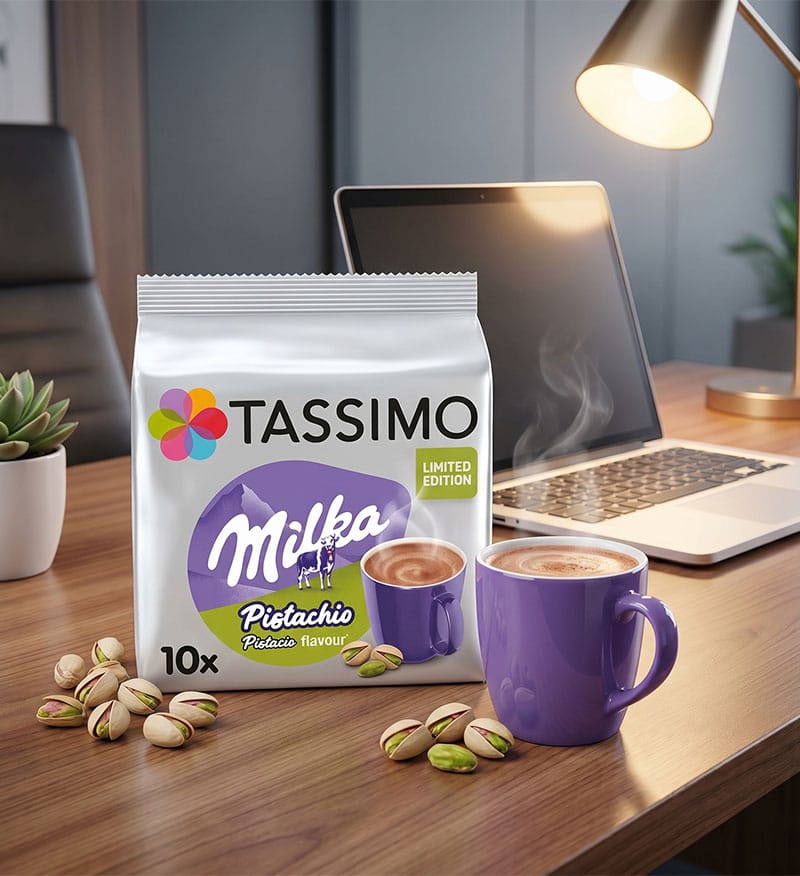 Tassimo Milka Pistachio reprezintă o ediție limitată și sofisticată ce îmbină finețea inconfundabilă a ciocolatei Milka cu notele aromatice și exotice ale fisticului, oferind o experiență de degustare unică. Această specialitate de ciocolată caldă este creată special pentru a livra o băutură cremoasă și învăluitoare, fiind ideală pentru momentele de răsfăț din timpul zilei când căutați un gust dulce și surprinzător.