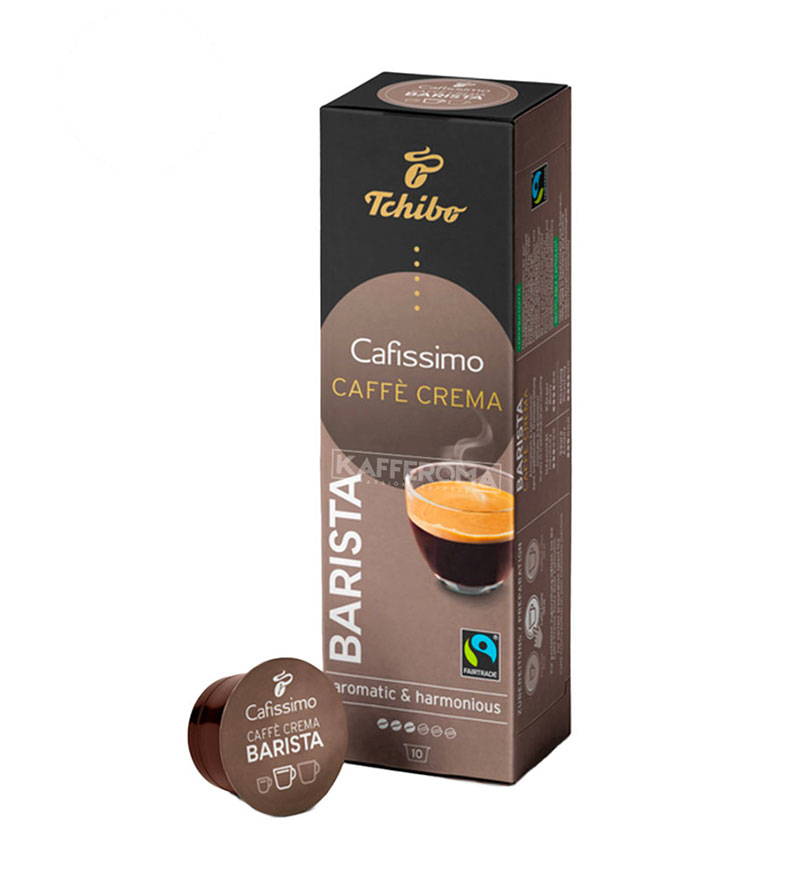 Tchibo Barista Caffé Crema este o specialitate de cafea desavarsita din boabe de cafea Arabica atent selectionate de la cea mai buna altitudine de crestere. In timpul prajirii traditionale, boabele de cafea dezvolta o aroma delicata si fructata, cu un corp fin si o crema delicata. Capsule originale Tchibo compatibile cu sistemele Cafissimo, Caffitaly, BeanZ Cafe și K-Fee System.