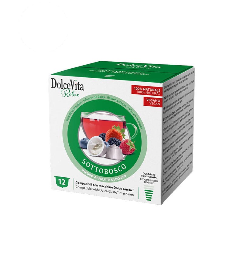 DolceVita Sottobosco este o infuzie de fructe rafinată, creată special pentru a oferi un moment de relaxare autentică și o explozie de prospețime naturală în fiecare ceașcă. Parte a liniei „Relax”, această băutură se distinge prin culoarea sa vibrantă și aroma intensă de fructe de pădure, fiind o alegere excelentă pentru cei care doresc să evite cofeina.