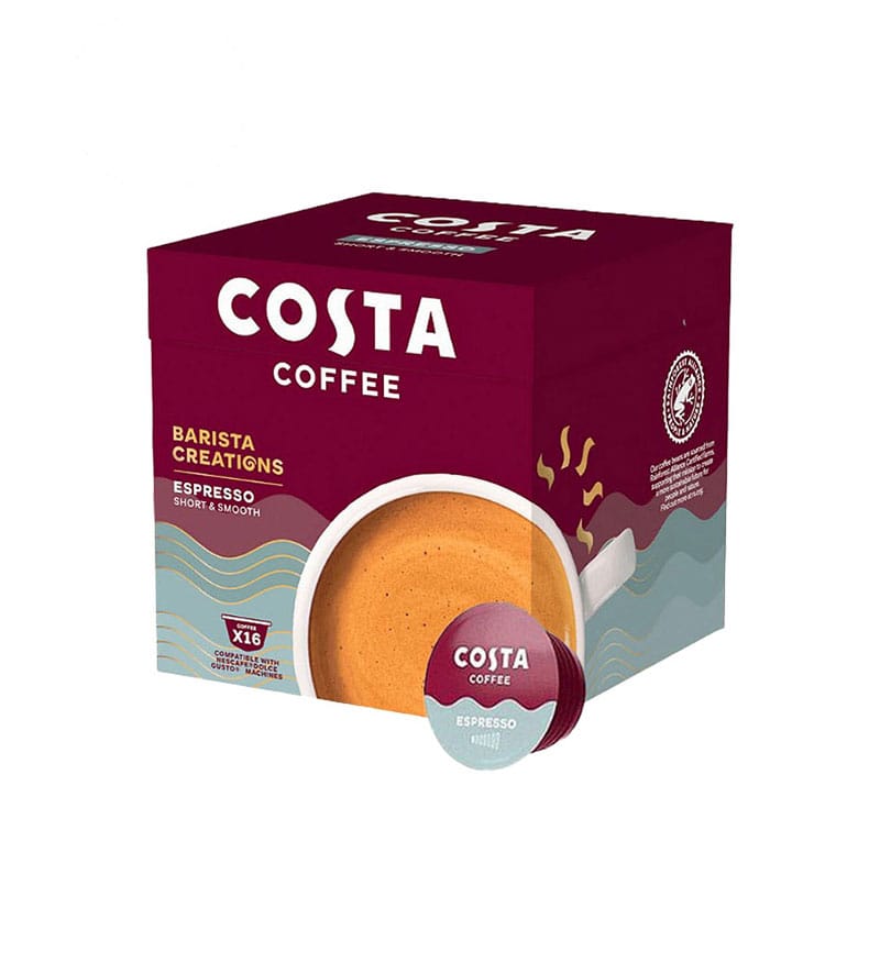 apsulele Costa Barista Creations Espresso sunt rezultatul expertizei și pasiunii Barista de la Costa Coffee. Aceste capsule aduc un espresso intens, bogat și autentic, echivalent cu cel preparat manual, fiind perfect compatibile cu sistemul Dolce Gusto.