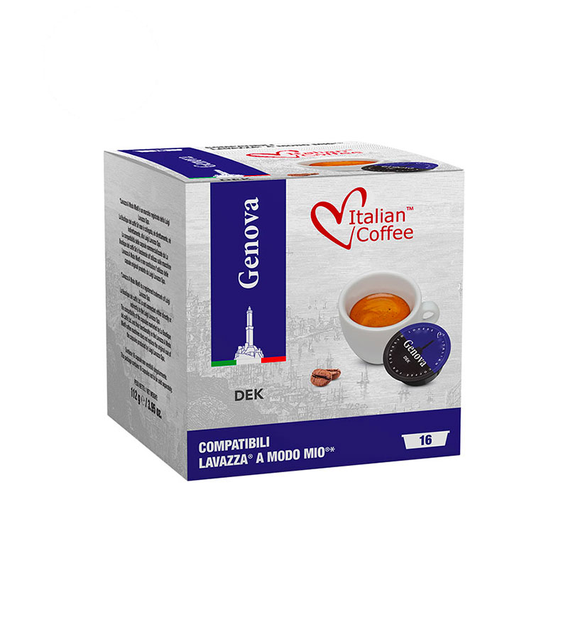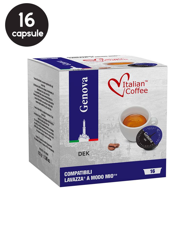 16 Capsule Italian Coffee Genova Decaffeinato – Compatibile A Modo Mio