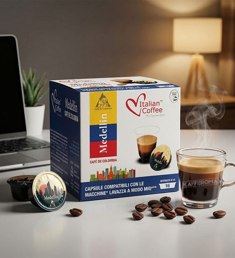 16 Capsule Italian Coffee Medellin – Compatibile A Modo Mio