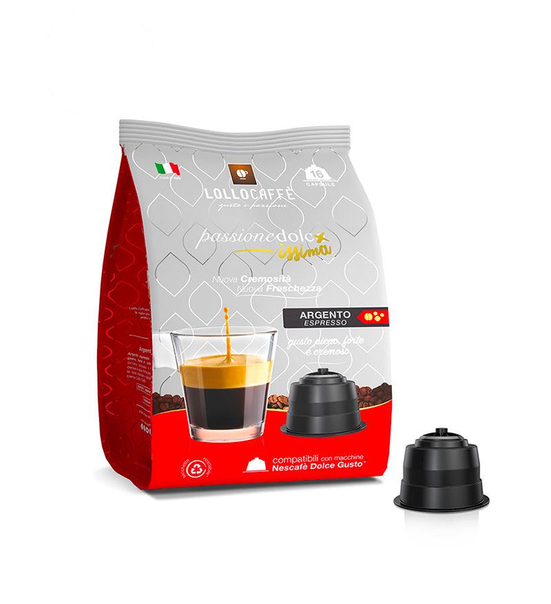16 Capsule Lollo Caffe Espresso Argento – Compatibile Dolce Gusto