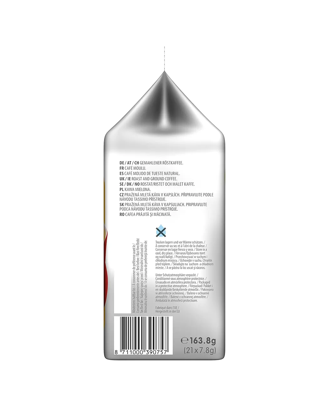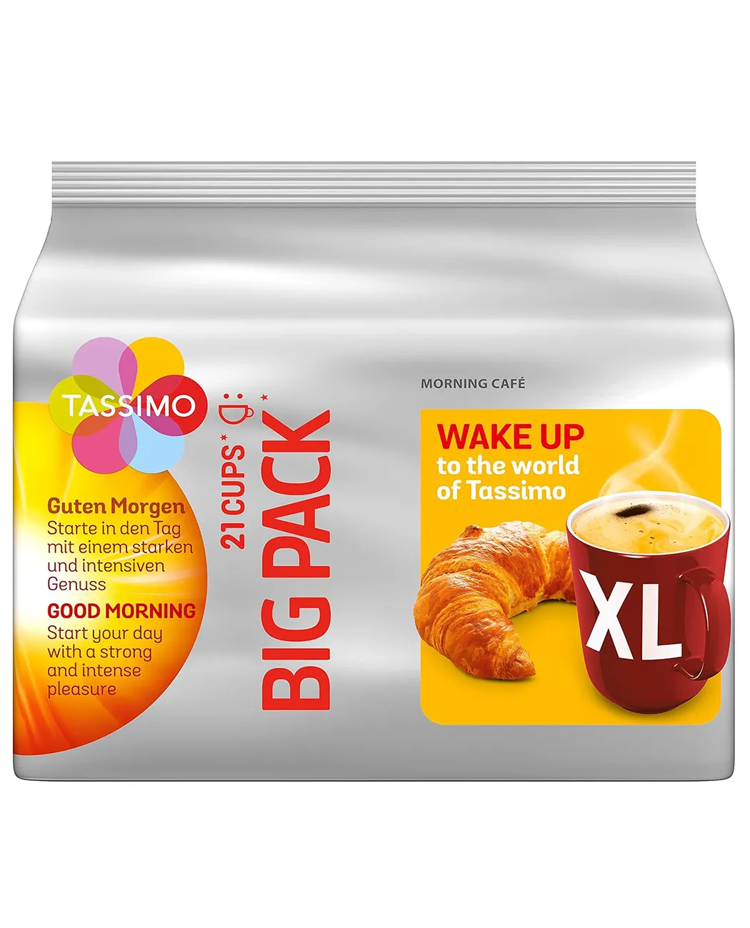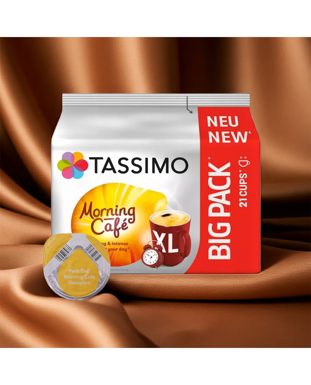 Ambalajul conține 21 capsule Tassimo Morning Café XL Strong, ideale pentru o ceașcă generoasă de 195 ml – o cafea intensă, aromată și energizantă, perfectă pentru începutul unei zile pline.