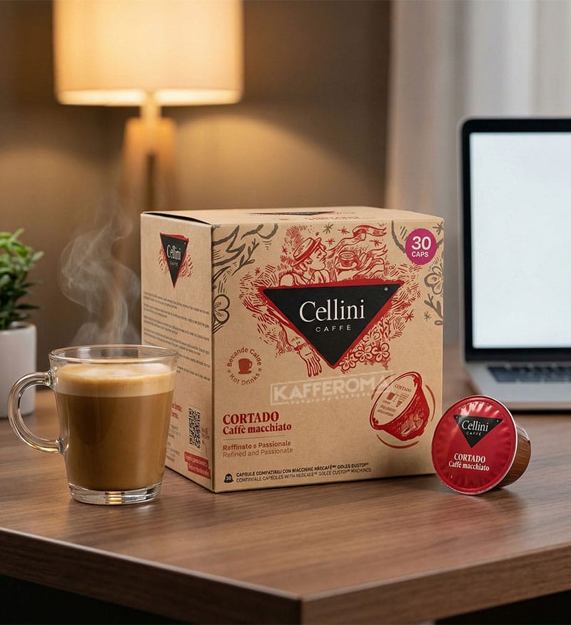 Ambalajul generos garantează prospețimea amestecului pentru o perioadă lungă de timp, fiecare capsulă fiind sigilată pentru a proteja calitățile organoleptice superioare ale ingredientelor folosite în prepararea acestei specialități gourmet. Cortado de la Cellini este alegerea ideală pentru pauzele de relaxare de pe parcursul zilei, oferind un răsfăț catifelat ce îmbină forța cafelei cu finețea lactată într-un mod armonios și extrem de satisfăcător.