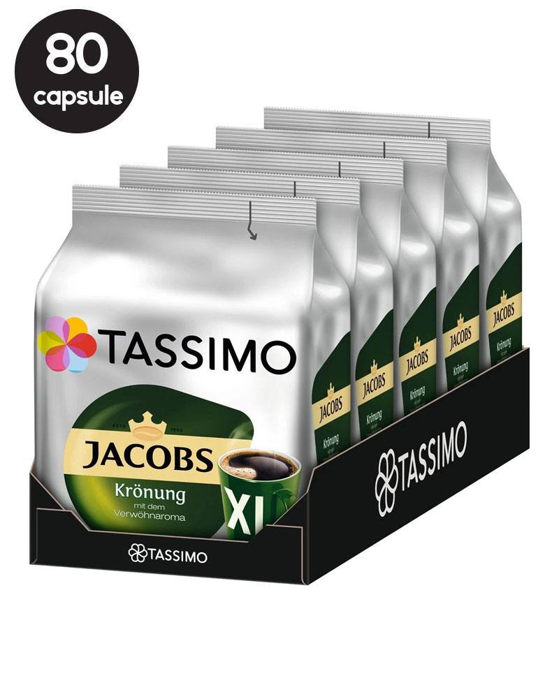 Ambalajul conține 80 capsule Tassimo Jacobs Krönung XL, perfecte pentru o ceașcă generoasă de 195 ml – o cafea elegantă, aromată și echilibrată, care aduce rafinamentul Jacobs în fiecare moment al zilei.