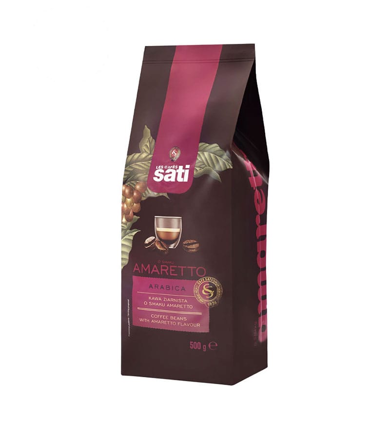 Café Sati Amaretto sub formă de boabe întregi oferă o incursiune în aromele dulci și sofisticate ale Italiei. Acest sortiment premium combină gustul rafinat al boabelor de Arabica cu aroma inconfundabilă și ușor amăruie a migdalelor, specifică lichiorului Amaretto.