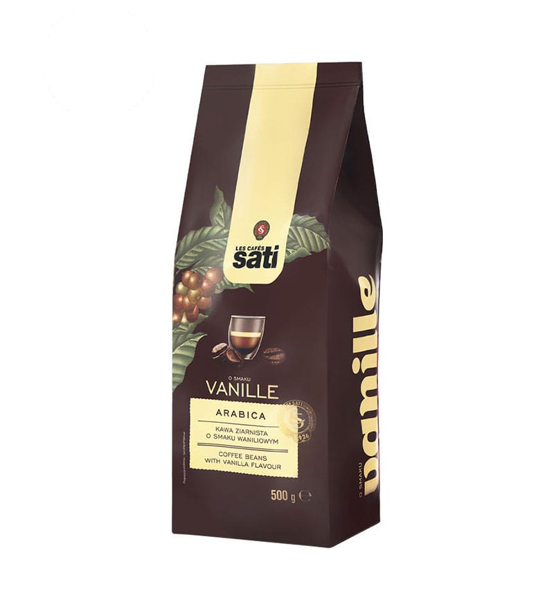 Café Sati Vanille în format de boabe întregi este alegerea premium pentru iubitorii de arome dulci și clasice, care preferă să își macine cafeaua chiar înainte de preparare. Acest sortiment combină boabe de înaltă calitate Arabica cu aroma caldă și reconfortantă de Vanilie.