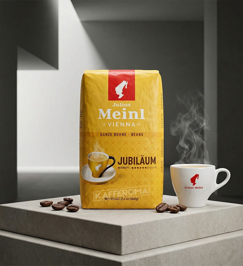Ambalajul de 500 grame este conceput pentru a conserva intacte uleiurile volatile și caracteristicile organoleptice ale boabelor, protejându-le împotriva oxidării și menținând savoarea autentică specifică rețetei originale. Julius Meinl Jubiläum nu este doar o cafea, ci o invitație de a descoperi eleganța Vienei în propria ceașcă, oferind un echilibru desăvârșit între istorie și măiestria modernă a prăjirii, fiind potrivită atât pentru espressoare automate, cât și pentru metode de preparare manuală care să-i evidențieze aromele nobile.