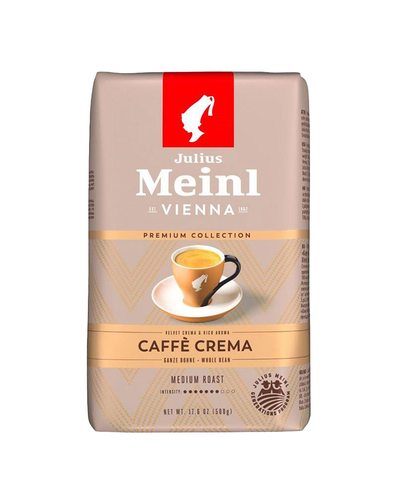 Julius Meinl Premium Caffe Crema – cele mai fine boabe de arabica din cele mai colorate regiuni din Brazilia și America Centrală și boabele selectate Robusta din Asia oferă acestui amestec o cremă catifelată, aromată și intensă cu nuanțe de alun. Ideală pentru prepararea cafelei cu lapte.