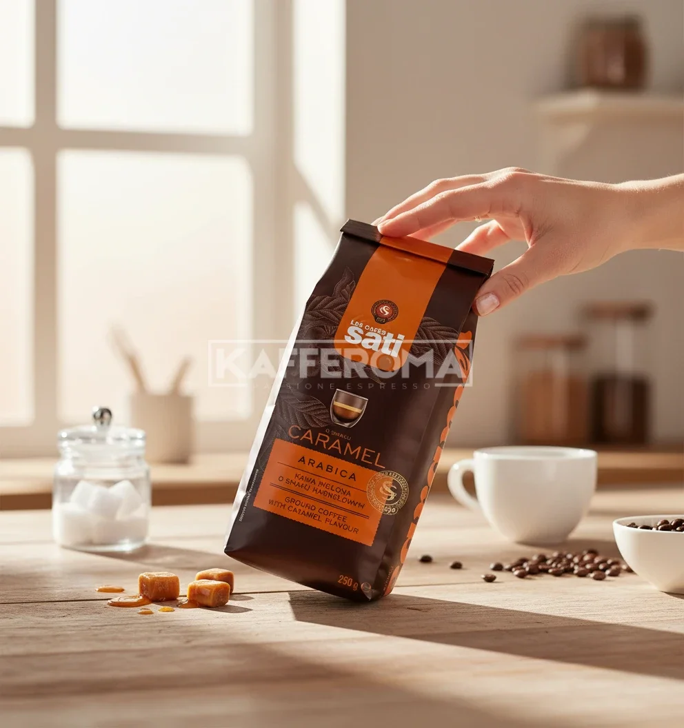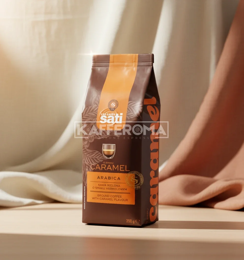 Cafeaua măcinată Sati Caramel este alegerea perfectă pentru a transforma pauza de cafea într-un moment de răsfăț intens. Aceasta combină boabe de înaltă calitate 100% Arabica cu aroma irezistibilă a caramelului, rezultând o băutură echilibrată, dar profund aromatică.