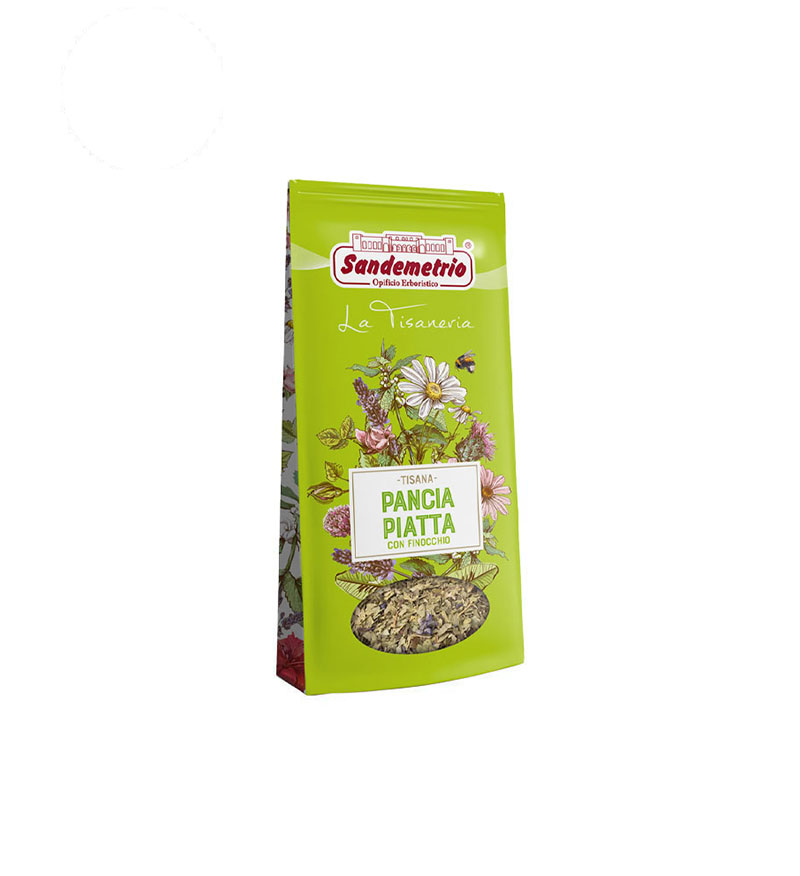 Ceai Pancia Piatta 100g – Sandemetrio este o infuzie naturală special creată pentru a favoriza digestia ușoară și senzația de confort abdominal, combinând plante atent selecționate pentru efectele lor benefice și gustul plăcut.